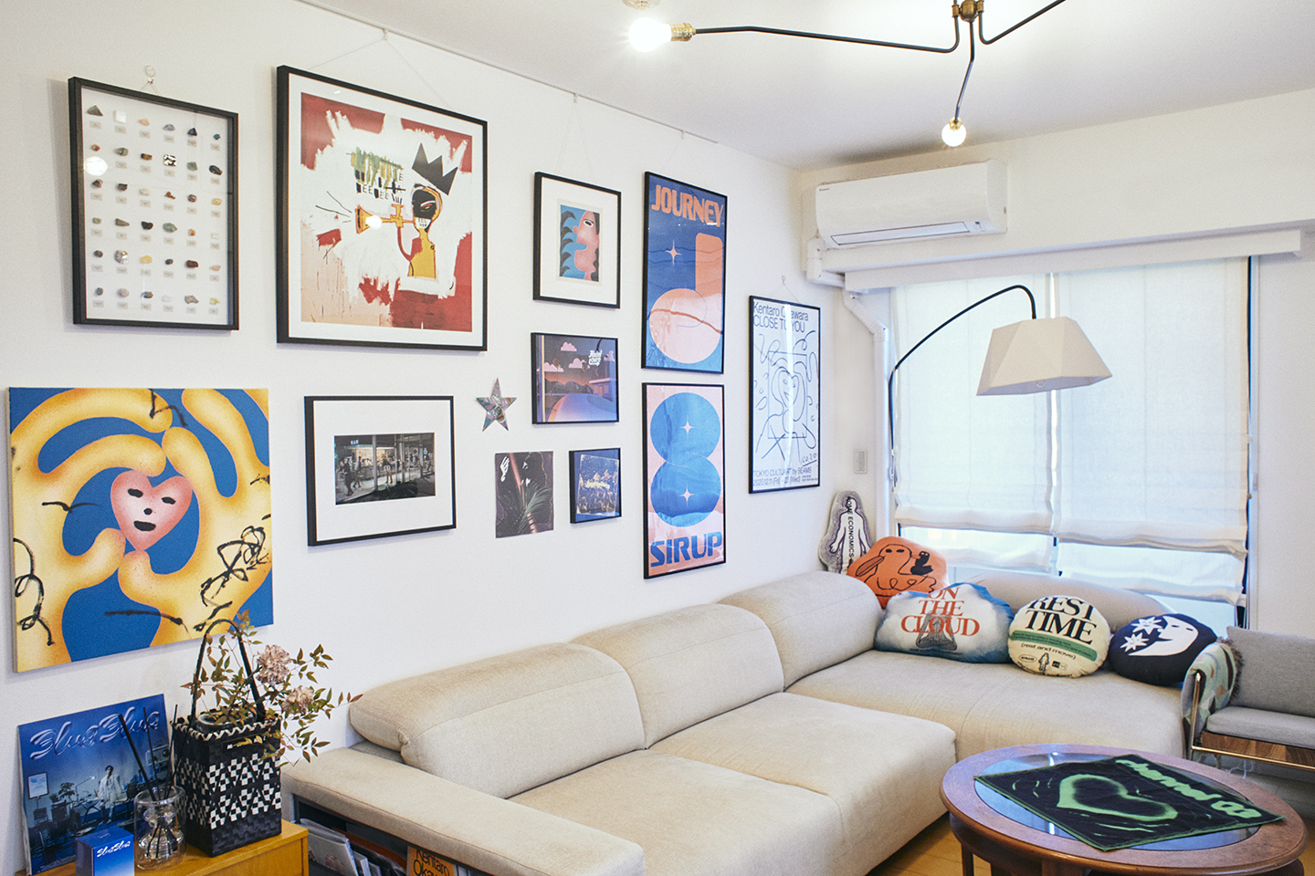 ご自宅には、SIRUPさんが“仲間”と敬愛する方々の作品が、部屋中ずらり。「共感できるのに自分とは違う発想をするアーティストが好き」「社会に対する想いが伝わってくるアーティストに惹かれる」など、作品のつくり手に対する想いを語ってもらいました。